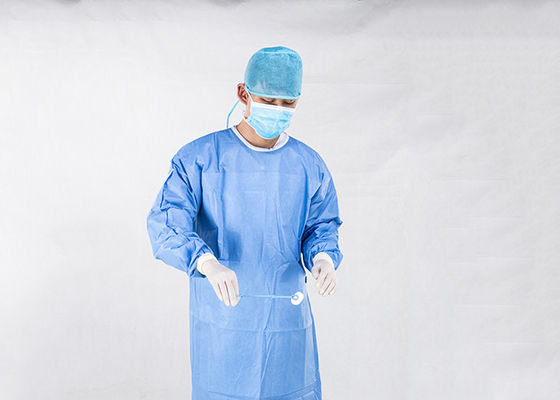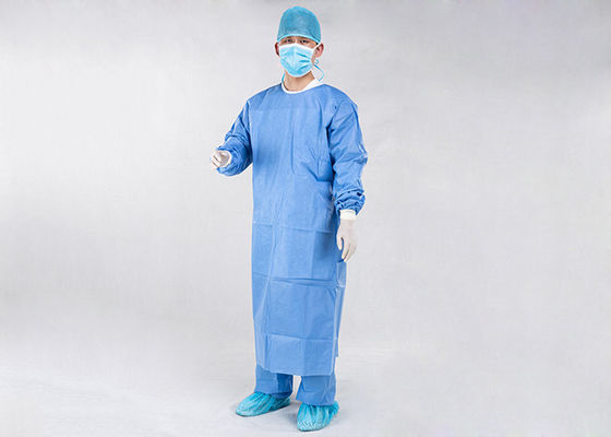 Disposable Reinforced Surgical Medical Surgical Gown Blue Surgical Gown With Knitted Cuff
